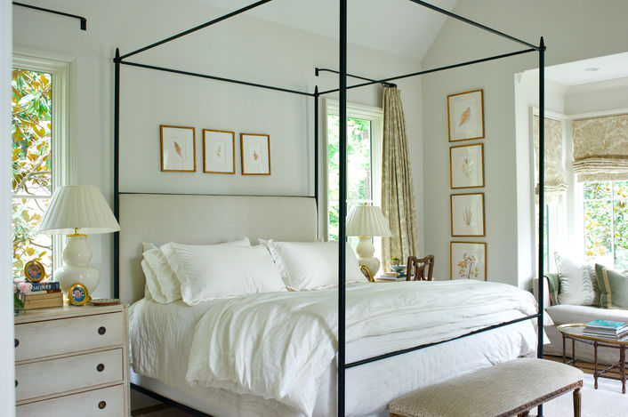 Built in 2020, this newly constructed home offered a blank canvas of white walls. Layers of color, texture, and patina were added to bring warmth and personality, creating a place equally suited to family life and large gatherings. To enhance the light in the main living areas, a local plaster craftsman mixed a custom Venetian finish in a pale, luminous shade. Textiles, furnishings and wallcoverings were chosen for their sense of ease and permanence, a mix of antiques and carefully crafted new upholstery that lends both refinement and familiarity. The art collection was thoughtfully curated, each piece representing a meaningful moment in the family’s life, adding a personal layer of narrative to a home designed to feel collected and personal. Outside, the landscape unfolds in a series of layered Southern gardens filled with climbing roses, fragrant gardenias, and hydrangeas beside a pea gravel courtyard that hosts ping pong tournaments as well as elegant open air dinners under the stars.